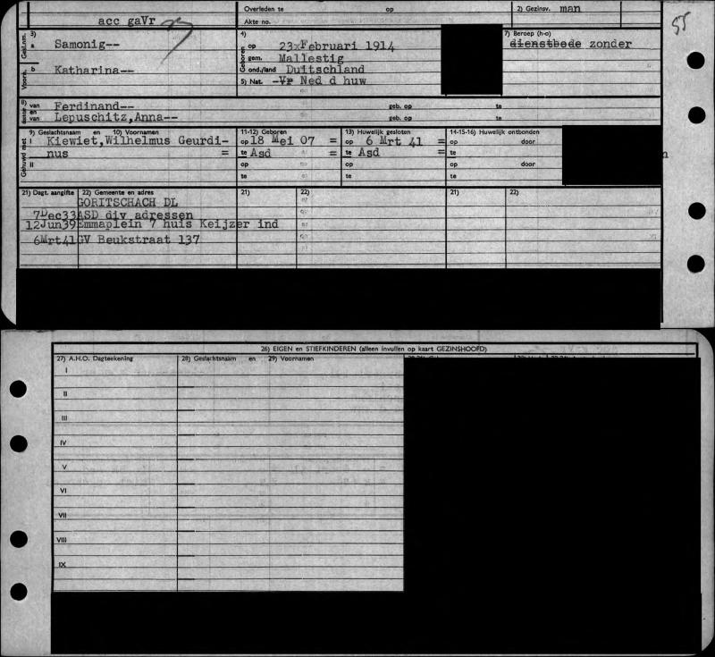 | Wilhelmus Geurdinus Kiewiet / Archiefkaart Katharina Samonig | PersonObservation |