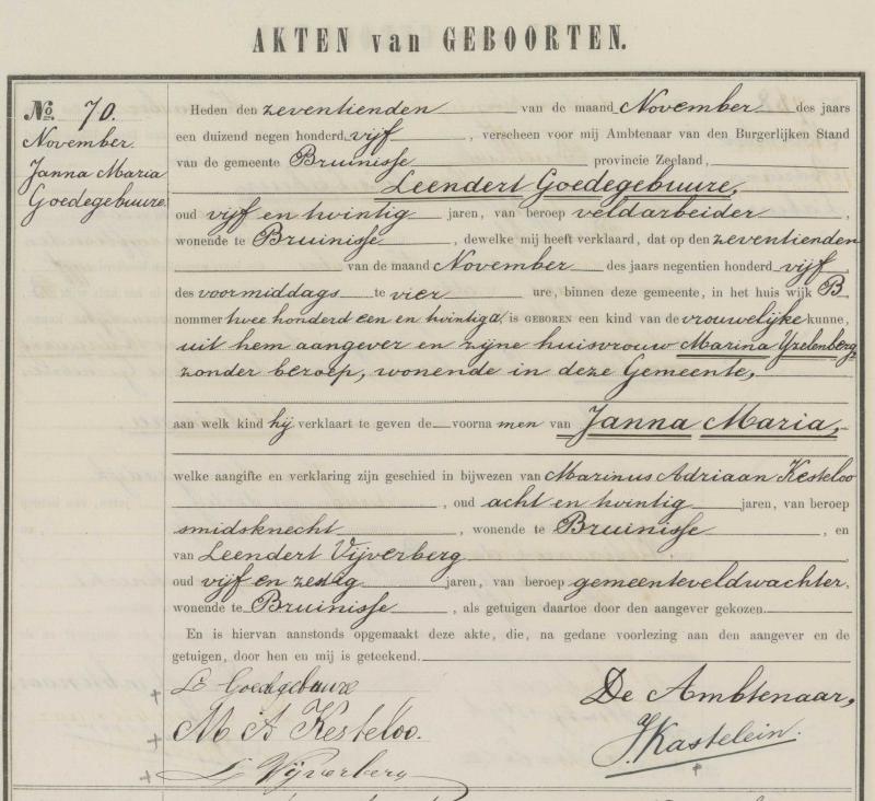 - Geboorteakte Janna Maria Goedegebuure