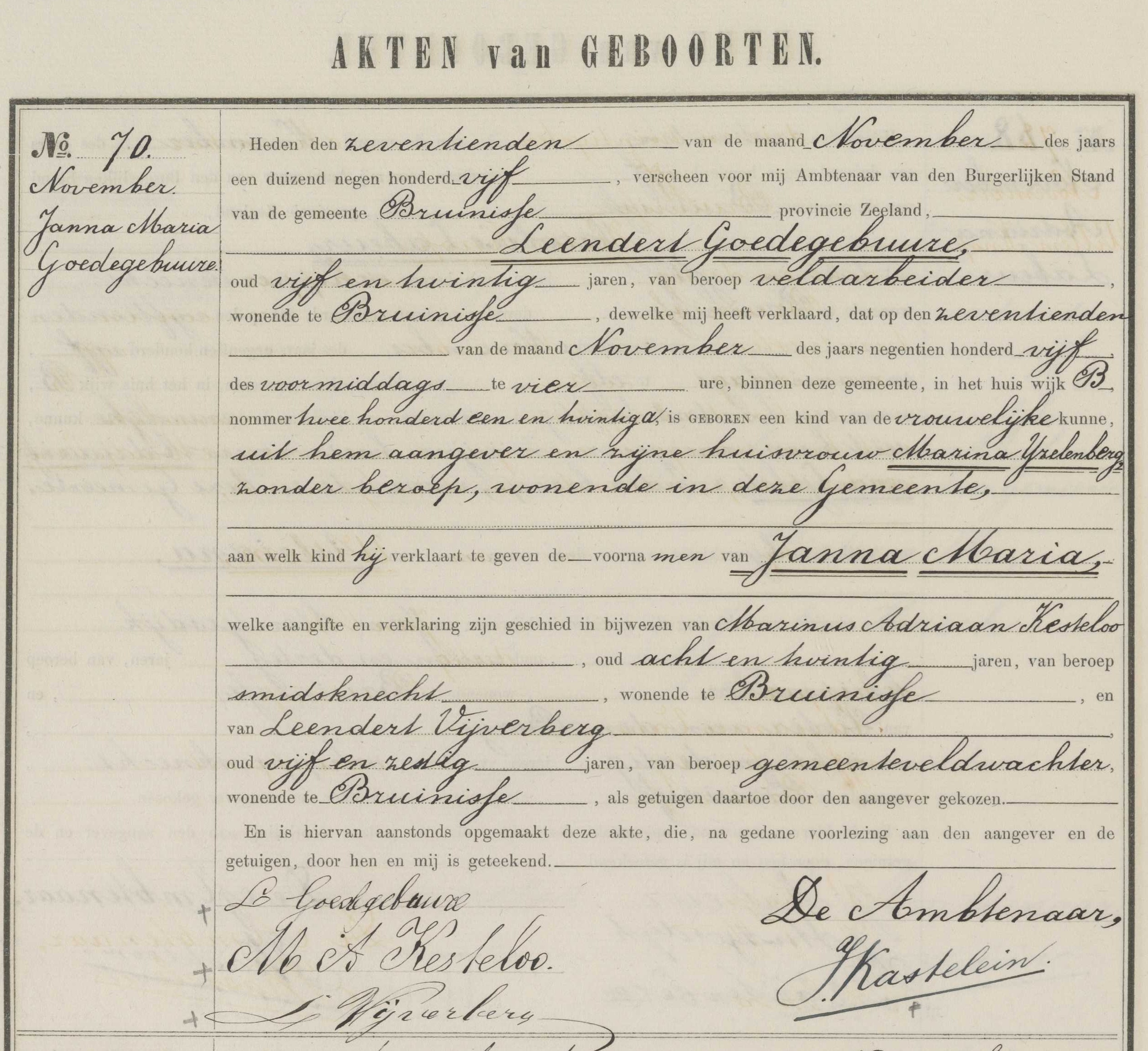 | Janna Maria Goedegebuure / Geboorteakte Janna Maria Goedegebuure | PersonObservation |