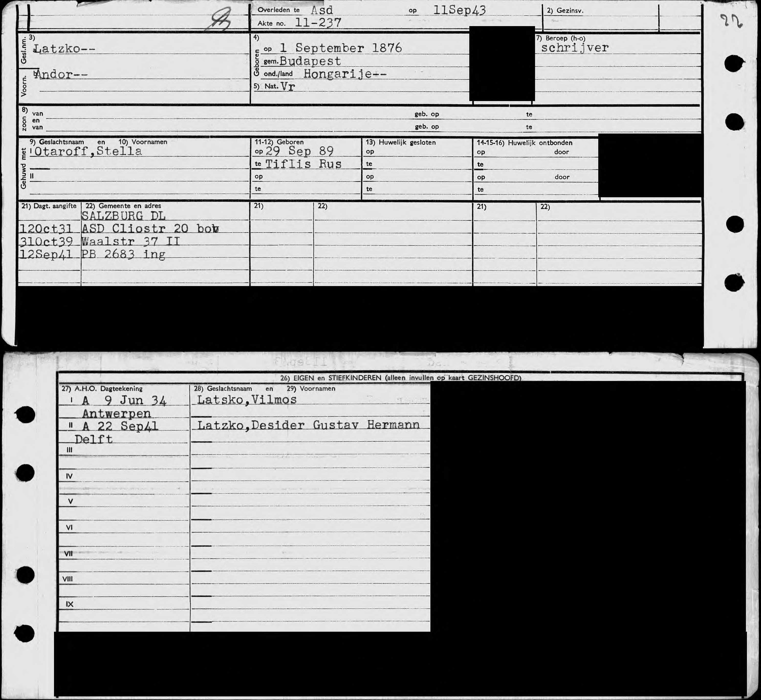 | Andor Latzko / Archiefkaart Andor Latzko | PersonObservation |