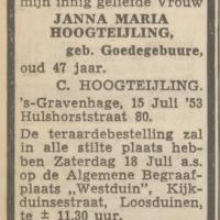 - De eerste 'innig geliefde Vrouw' van Cornelis Hoogteijling. Cor en Jannie groeiden allebei op in de Schilderswijk.