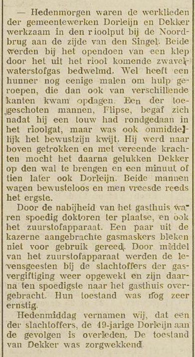 bericht over ongeval Leendert Dorleijn in de Middelburgsche courant