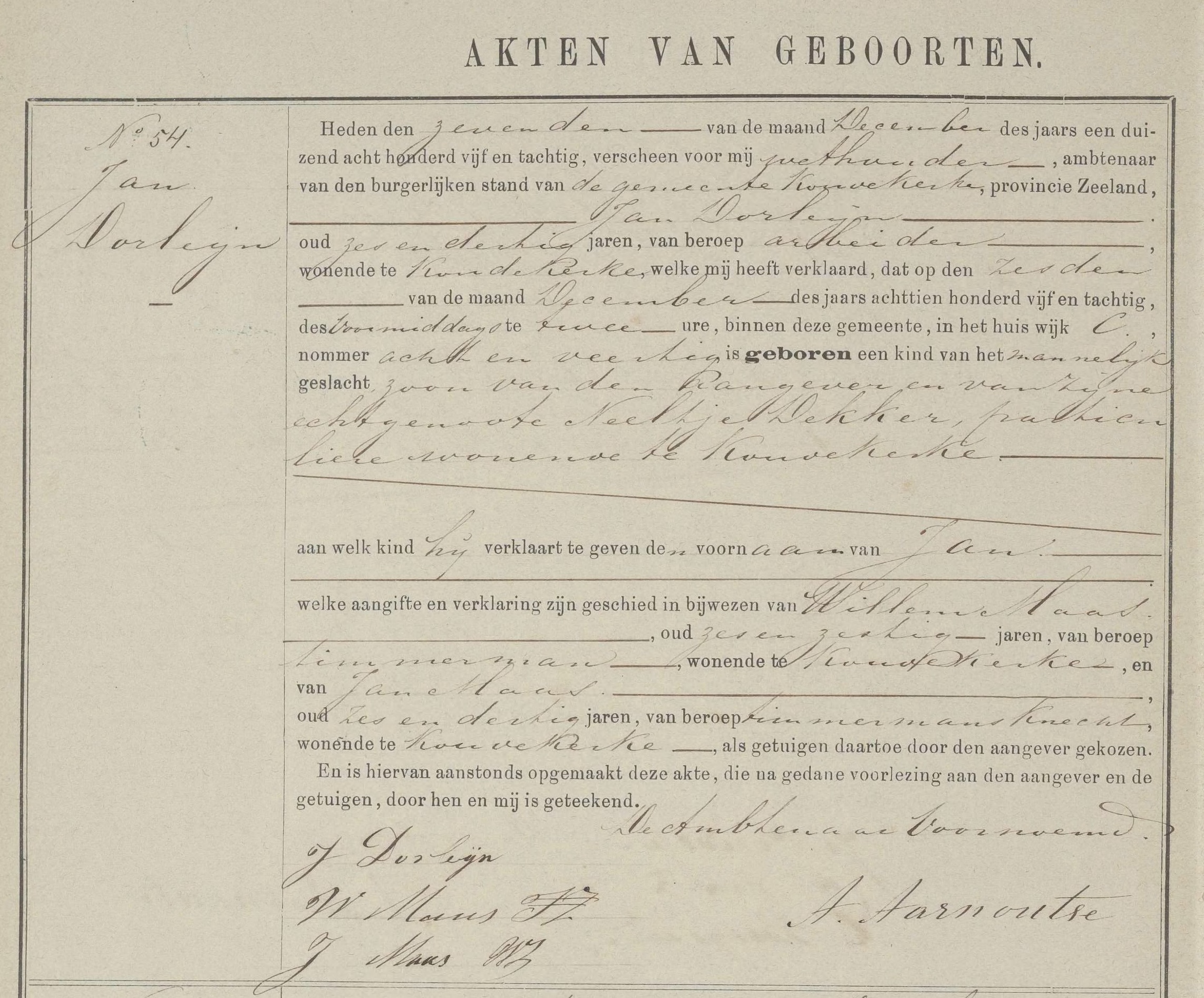 Geboorteakte Jan Dorleijn