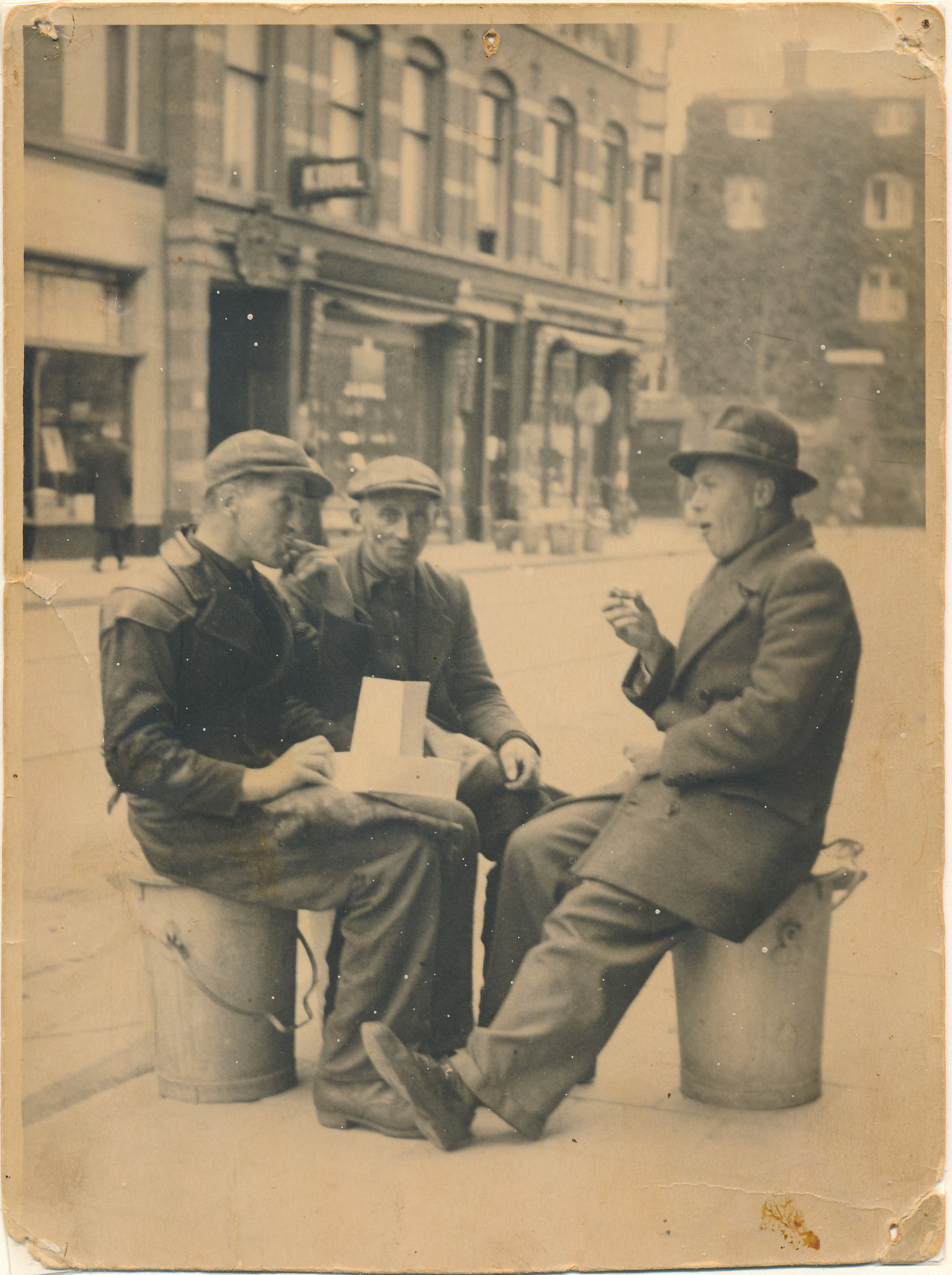 Berend met twee vrienden een dagje naar Den Haag. Bij de firma Krul (in de Weimarstraat) werd gebak gekocht, en dat werd gezeten op vuilnisemmers genuttigd. Een fotograaf die daarnaast of ertegenover een winkel had vroeg of hij het groepje mocht fotograferen. "Als je ons een afdrukje stuurt", zei Berend.