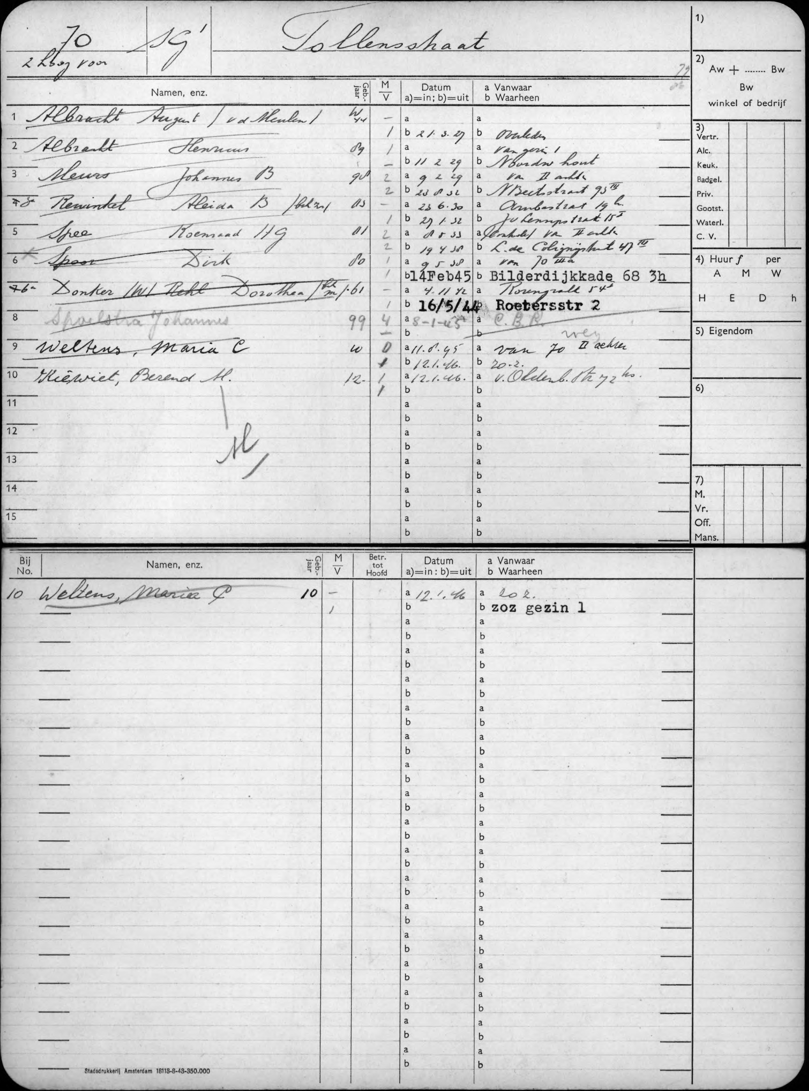 Tollensstraat 70-II-voor (woonadres Stien van 11 augustus 1945 tot 3 augustus 1964) |