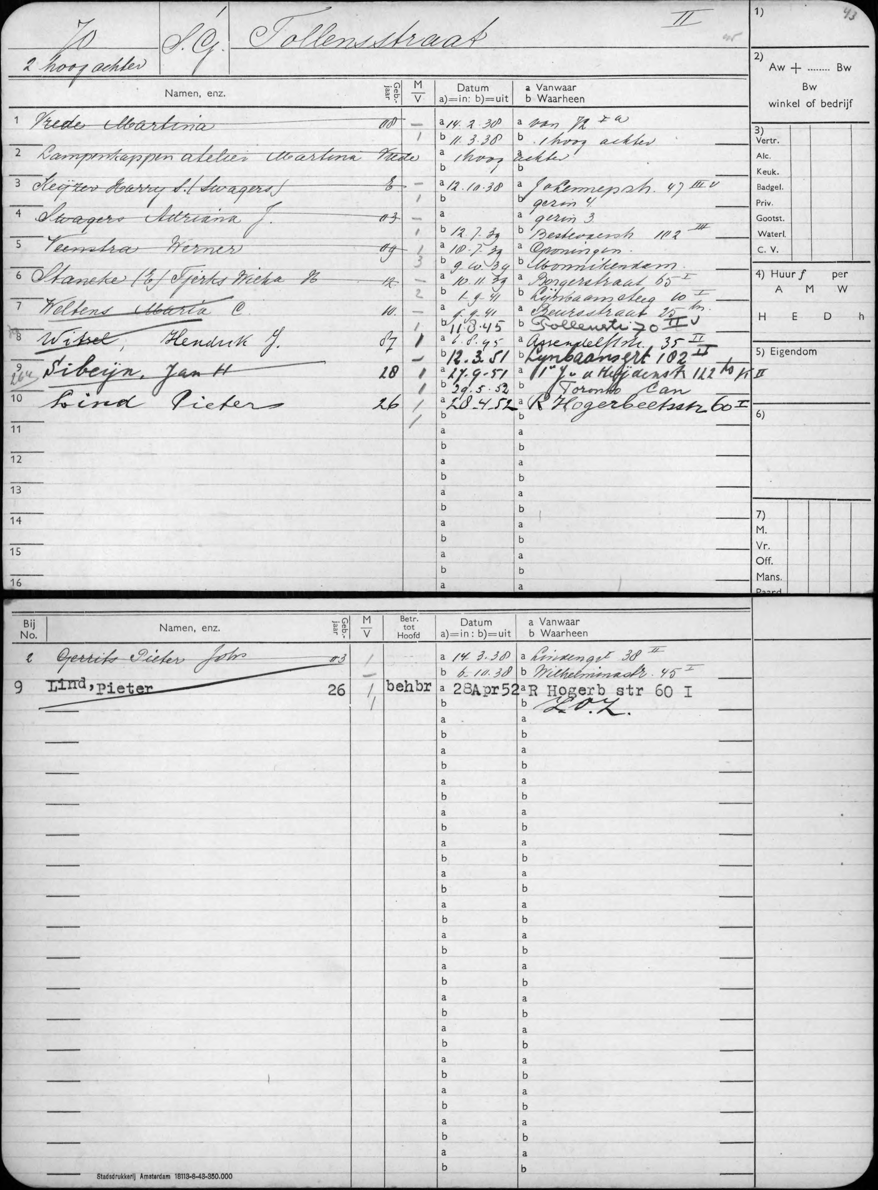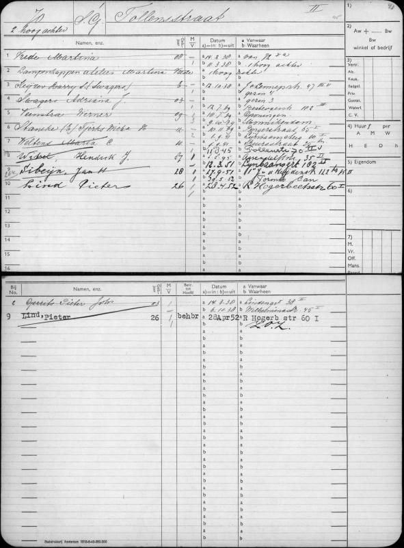 Tollensstraat 70-II-voor (woonadres Stien van 11 augustus 1945 tot 3 augustus 1964) |