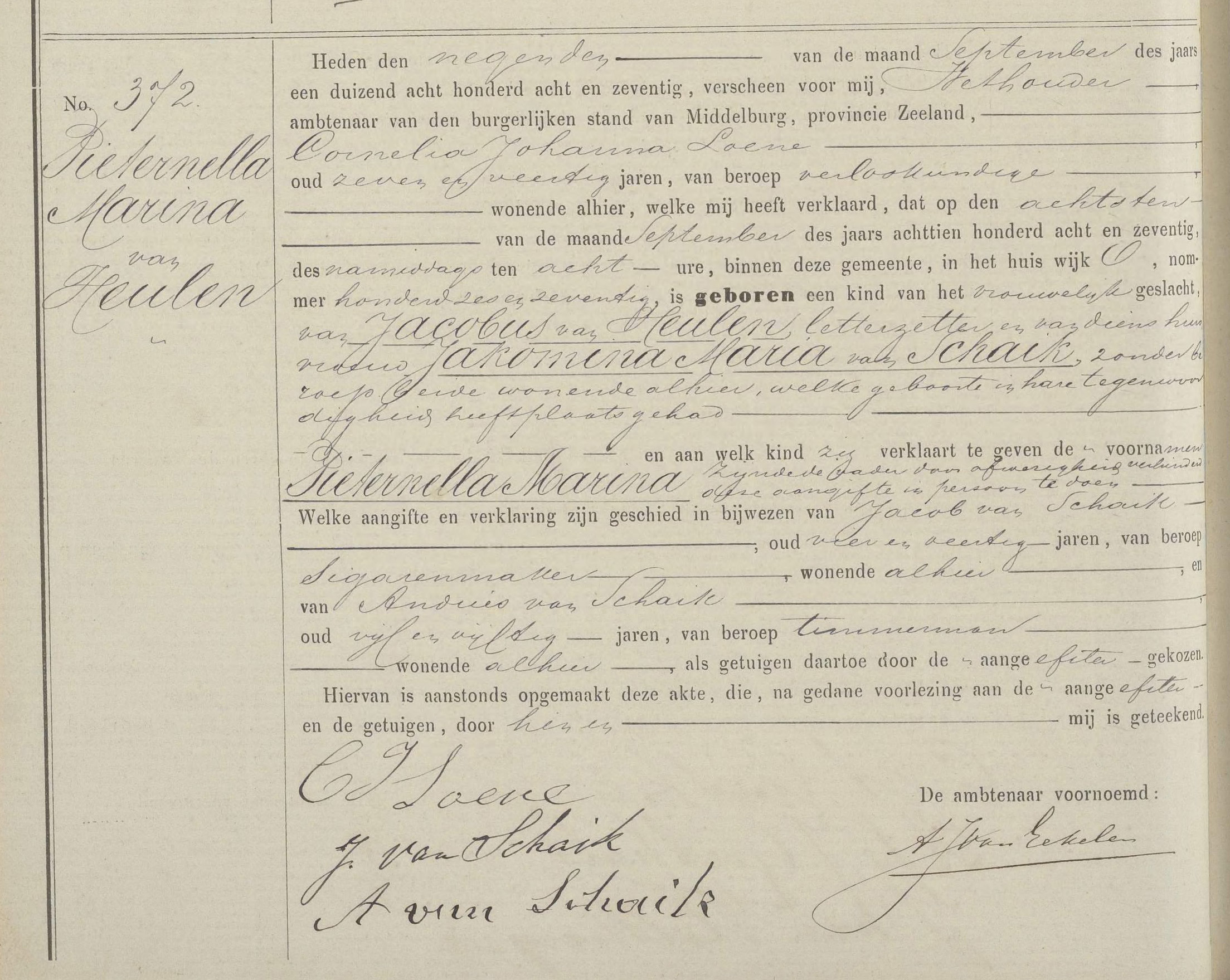 Objectenmet "Bron:Geboorteakte Pieternella van Heulen"