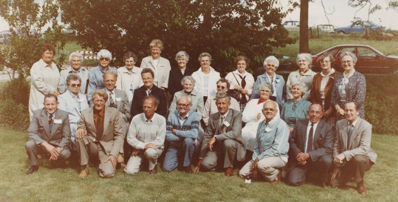 Reünie Zwingelspaan - juf Dorleijn temidden van haar voormalige klas