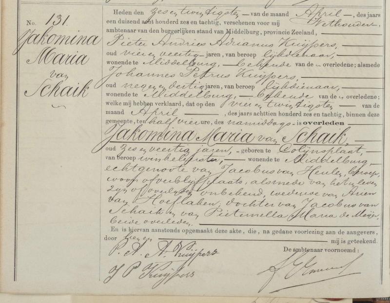 Objectenmet "Bron:Overlijdensakte Jakomina Maria van Schaik, 24-4-1886"