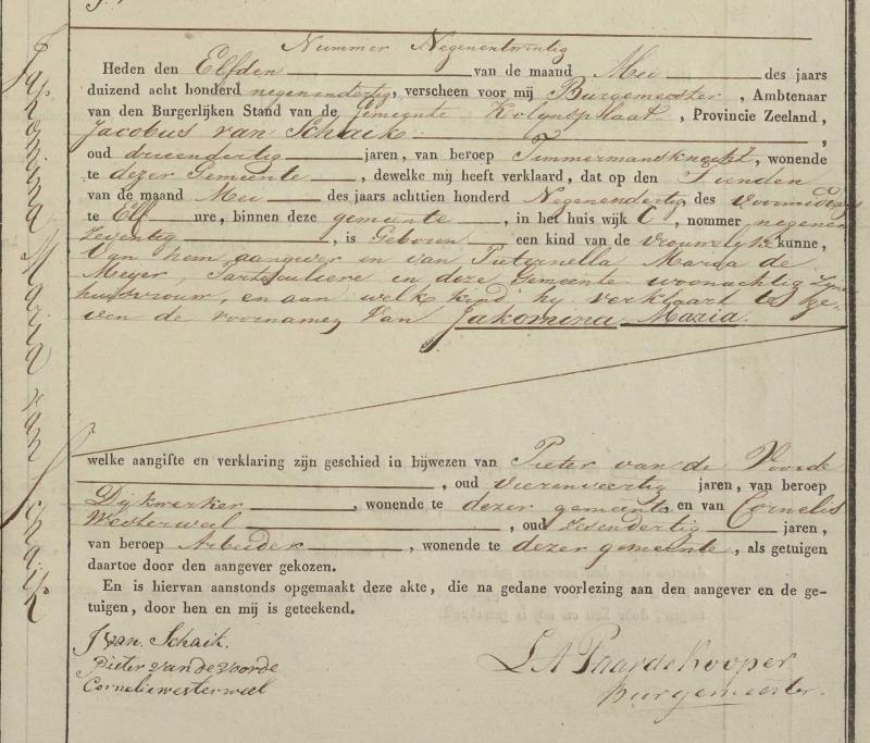 Objectenmet "Bron:Geboorteakte Jakomina Maria van Schaik"