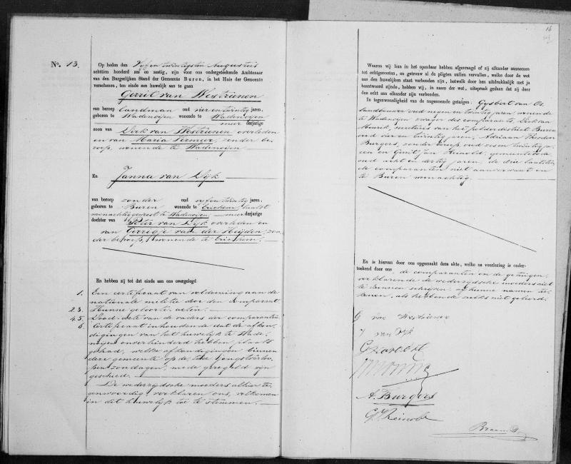 Huwelijksakte Gerrit van Westrienen en Janna van Dijk, 25-08-1866