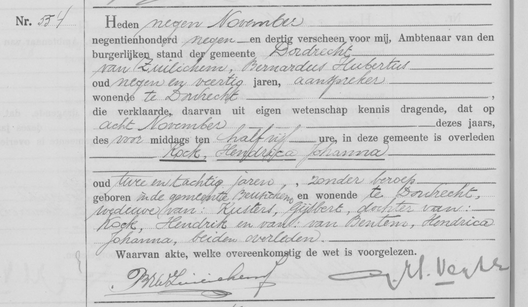 Objectenmet "Bron:Overlijdensakte Hendrica Johanna Kock, 08-11-1939"